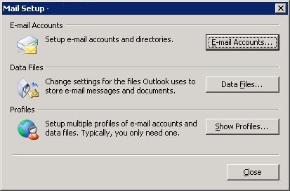 1. Browse to 'Control Panel' - 'Mail' - 'Show Profiles'