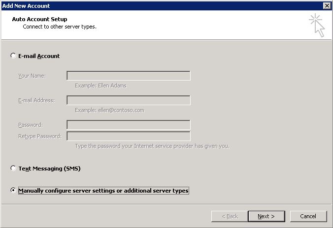 4. Select 'manual setup or additional server types' and select 'Next'
