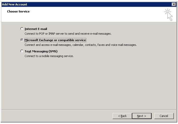 5. Select 'Microsoft Exchange Server or compatible service' and click 'Next'