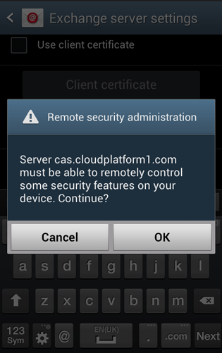 The phone will then check the Exchanges Server settings and display the Remote Security Administration message;