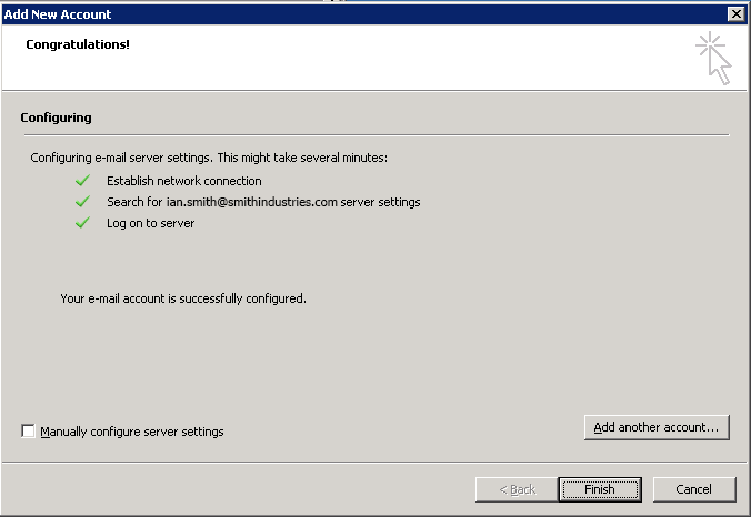 6. If the details provided are correct and Autodiscover has been set-up correctly then you will see the confirmation screen